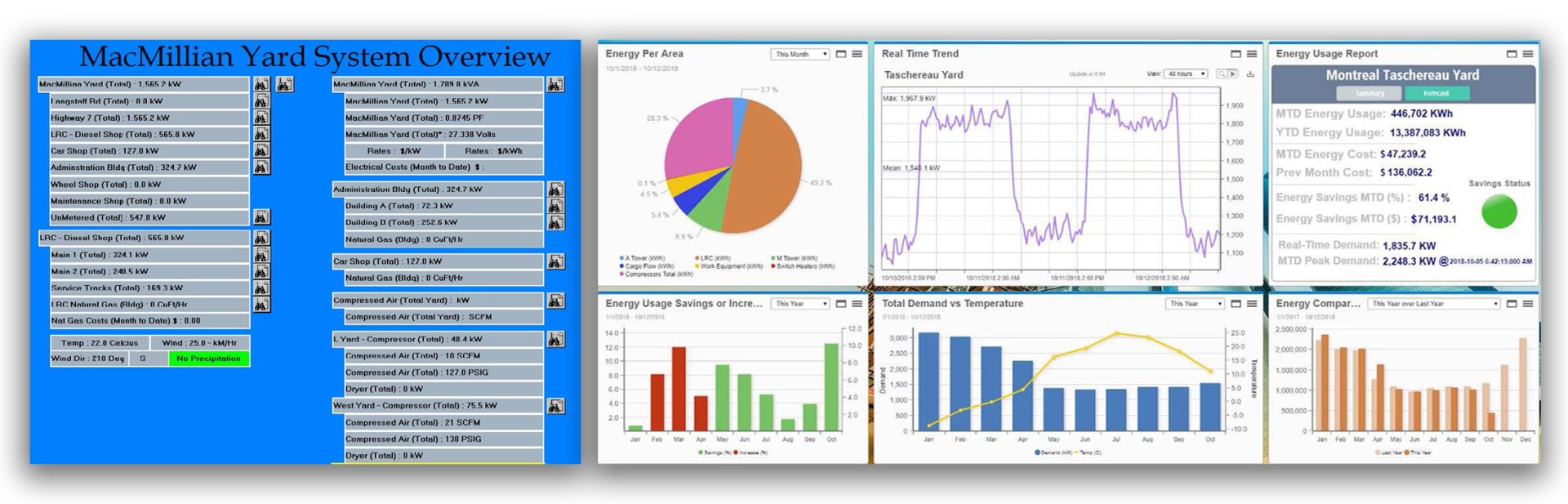 For years, CN’s Energy Management team used PC-based Energy Management Information System (EMIS) software on 21 major sites in North America, with a total monitored electrical load of 30 MW. On any given day, this existing system would generate around 400,000 new data points. Converting this huge amount of data into meaningful information was extremely challenging and limited by the existing system.